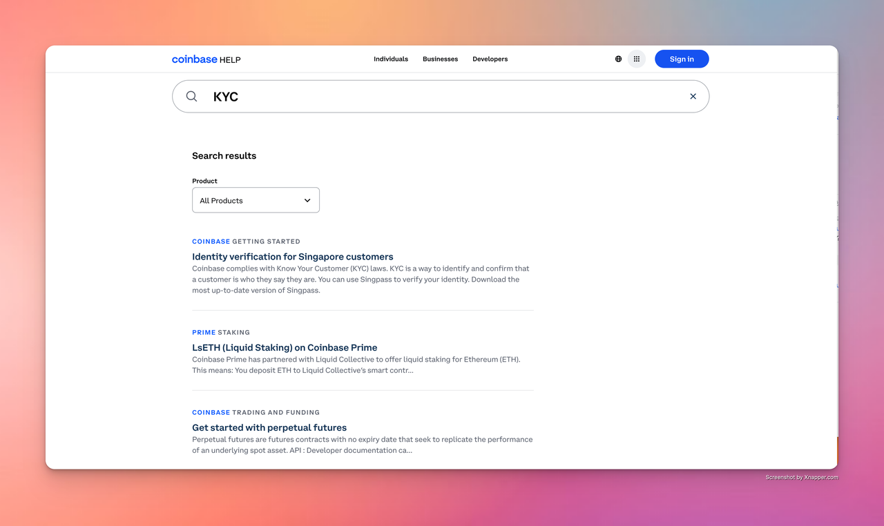 Example 1: Coinbase KYC Requirements: Visit the official website of the Coinbase exchange to view its KYC requirements and related information.