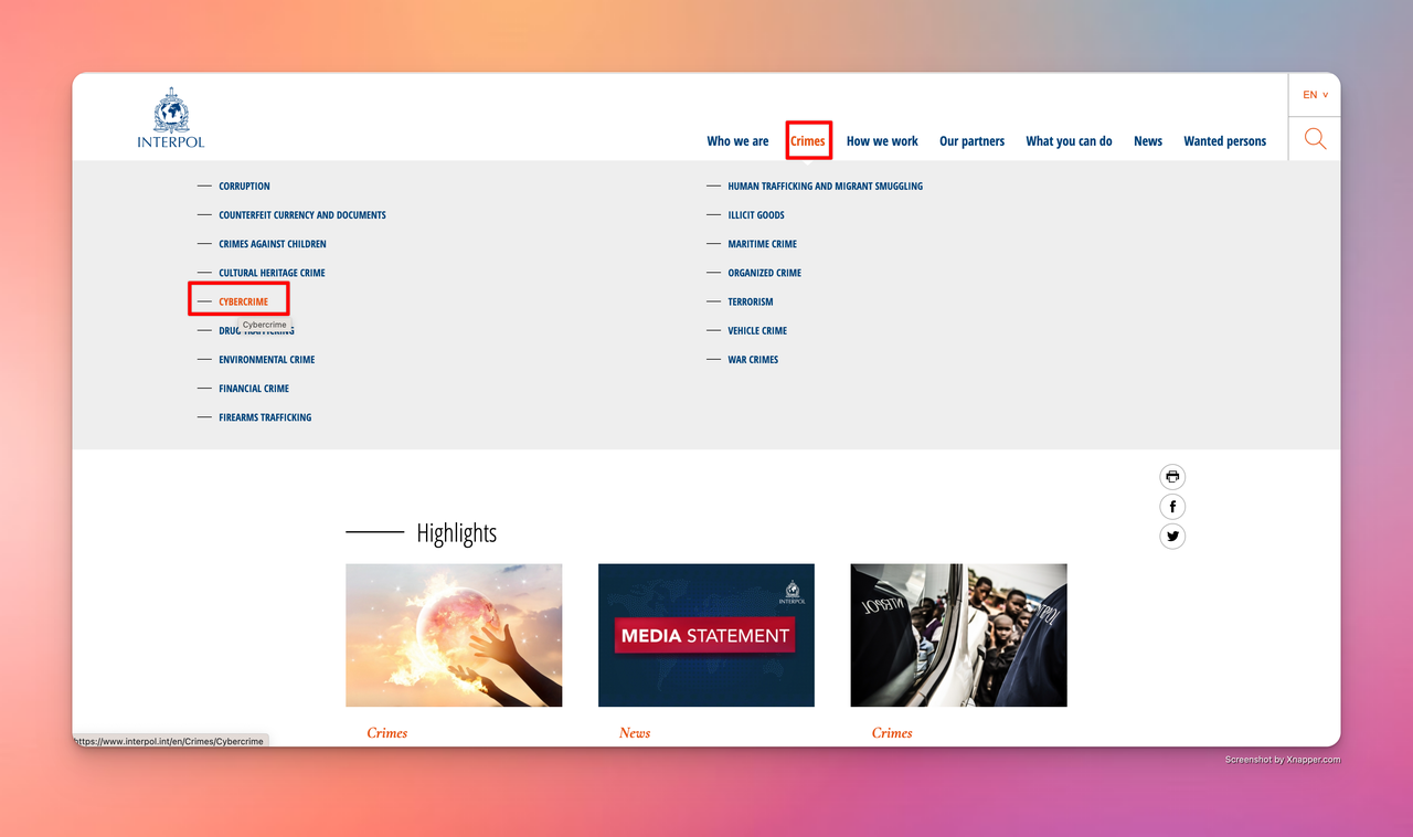 Example 2: Interpol official statement provides law enforcement activities and cryptocurrency addresses.