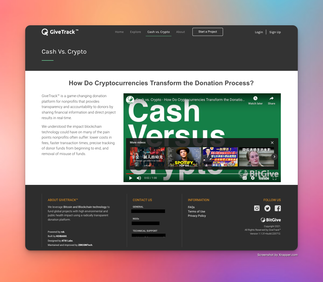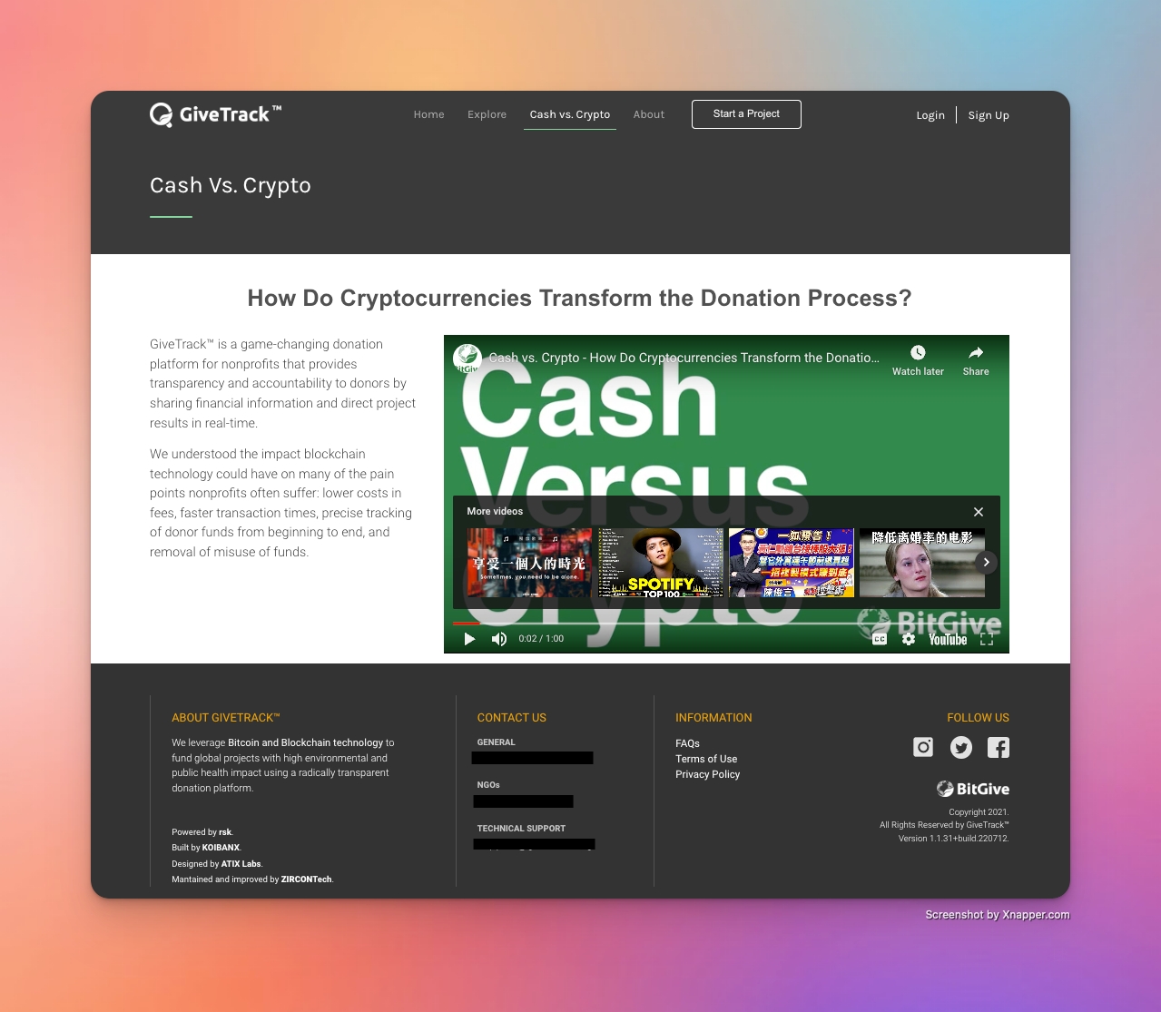 Example 1: Visit BitGive Foundation to see the donation addresses for Bitcoin and other cryptocurrencies it accepts.