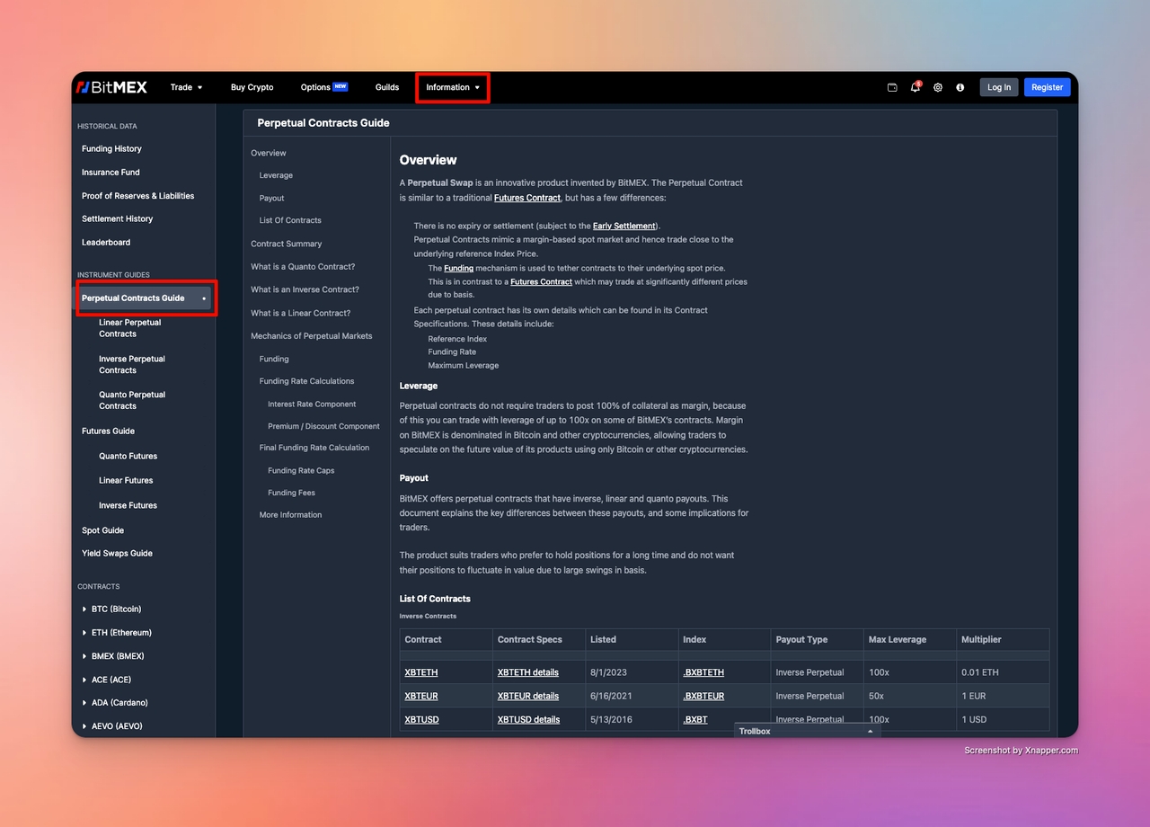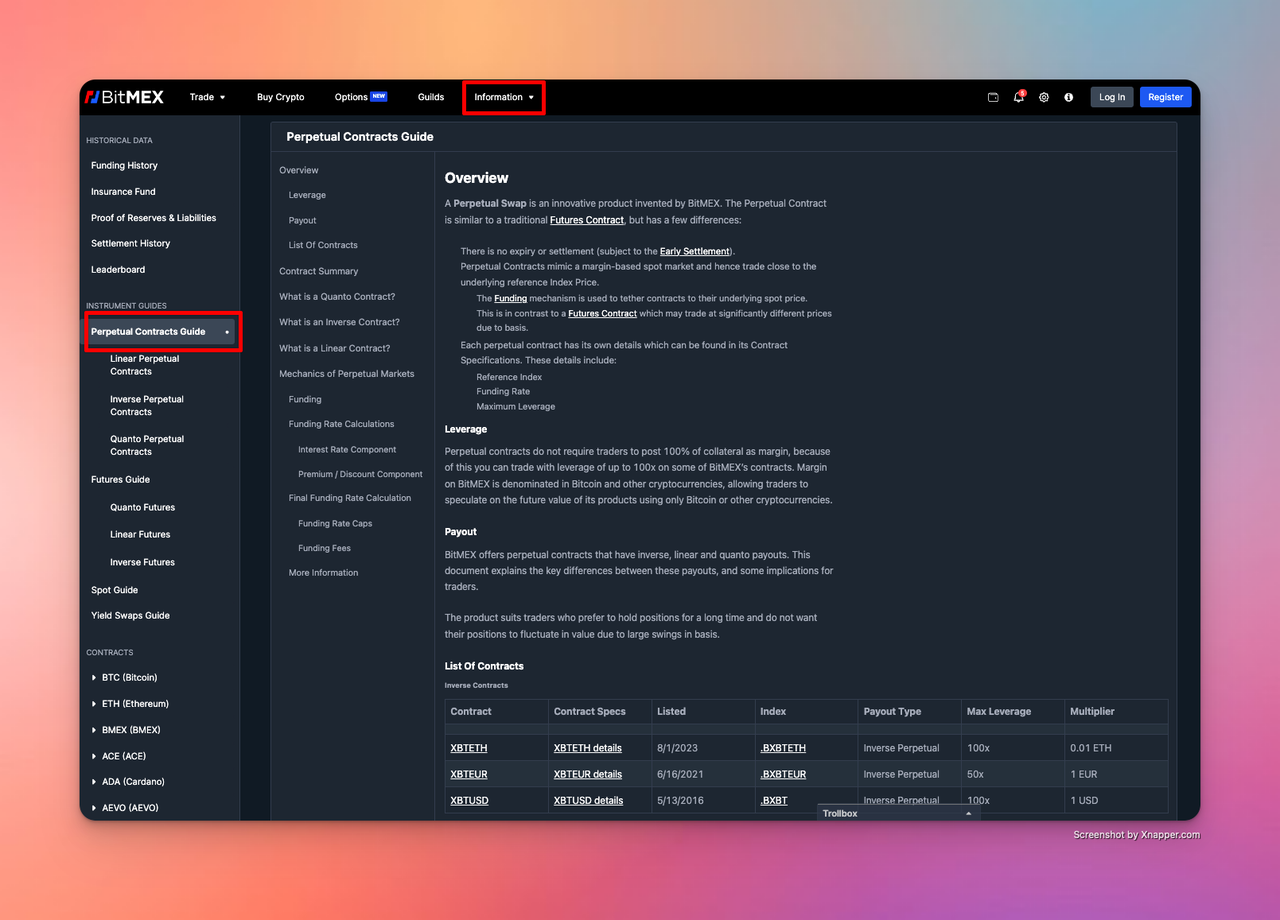 Example 1: Visit the official website of BitMEX to see the smart contract address of its perpetual contract.